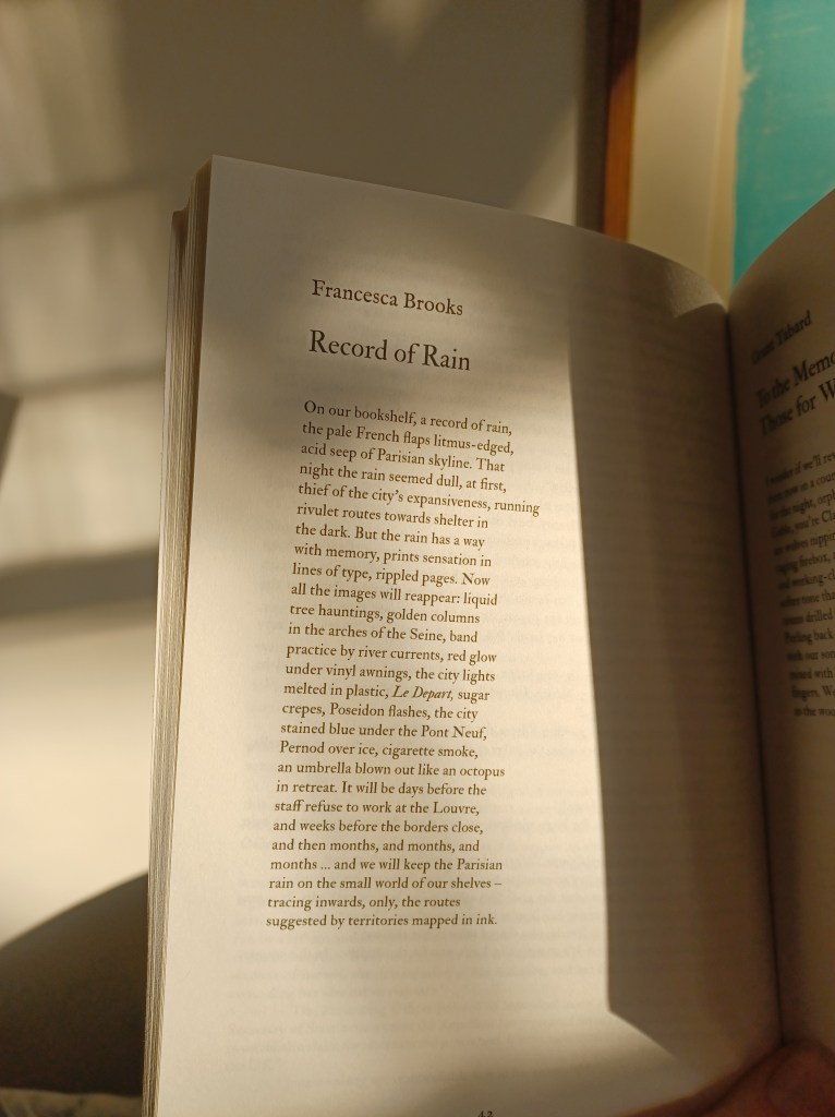 The first poem is in the wonderful Lighthouse Journal’s 23rd issue of poetry and short fiction, which you can purchase a copy of here. The poem, ‘Record of Rain’, begins with a rain-soaked copy of Annie Ernaux’s The Years (translated by Tanya Leslie) and the memories of Paris it provokes and preserves.